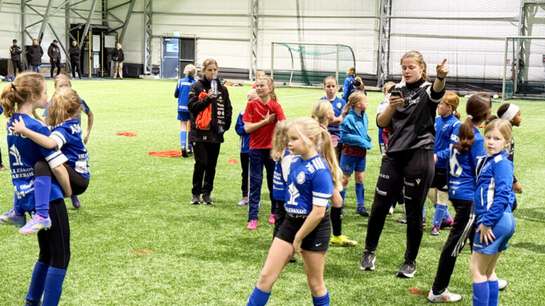 INSPIRASJON. Gjennom helgen lot de lokale jentene i Birkenes IL seg inspirere av spillerne fra IK Start Kvinner. (Foto: Thomas Salvesen)