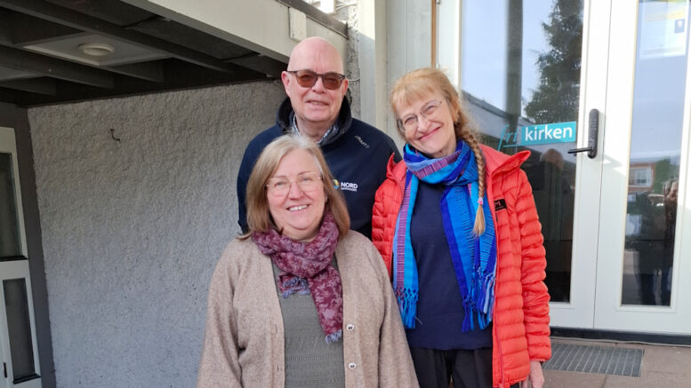 SAMMEN OM FELLES SAK: Representanter fra komiteen, representert ved (f.v.) Karin R. Aanesland, diakon i Birkeland Frikirke, Sven Erik Forfang, menighetsrådsleder i Birkenes menighet, og Solfrid Elgvin Lied, leder for Felleskirkelig komité. (Foto: Jostein Teistedal 2026).