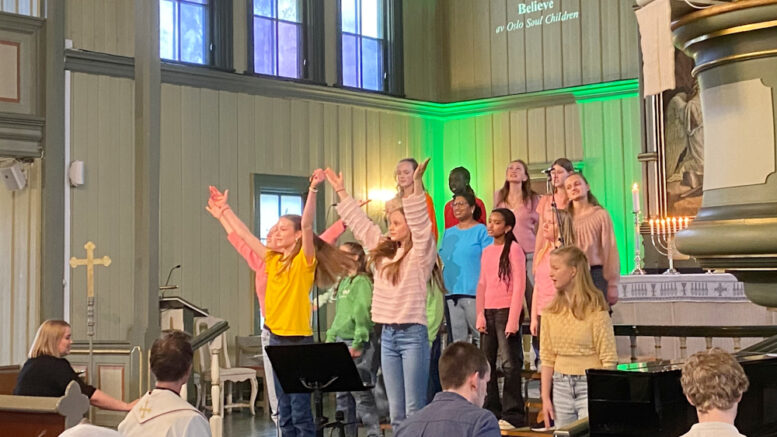 STERKE BIDRAG. Birkeland Soul Children- og Teens under ledelse av Janna Risdal Ånesland hadde sterke bidrag under Soul Church gudstjenesten i Birkenes kirke på søndag.